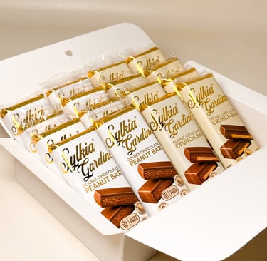 Experience the Luxury of Handmade Peanut & Hazelnut Chocolate Bars.