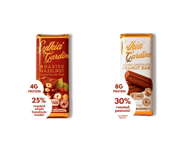 25% Roasted Hazelnuts in the Hazelnut Chocolate Bar!